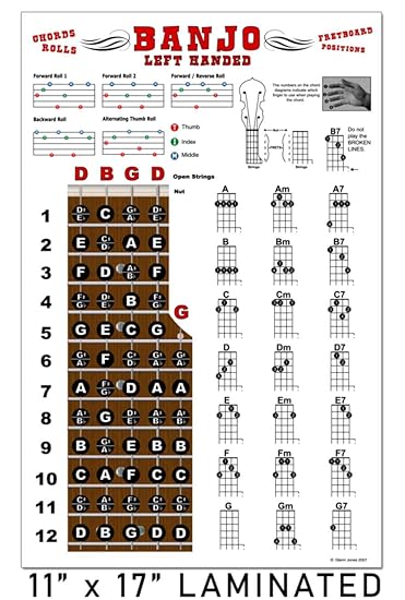 Amazon Com Laminated Left Handed Banjo Chords And Fretboard