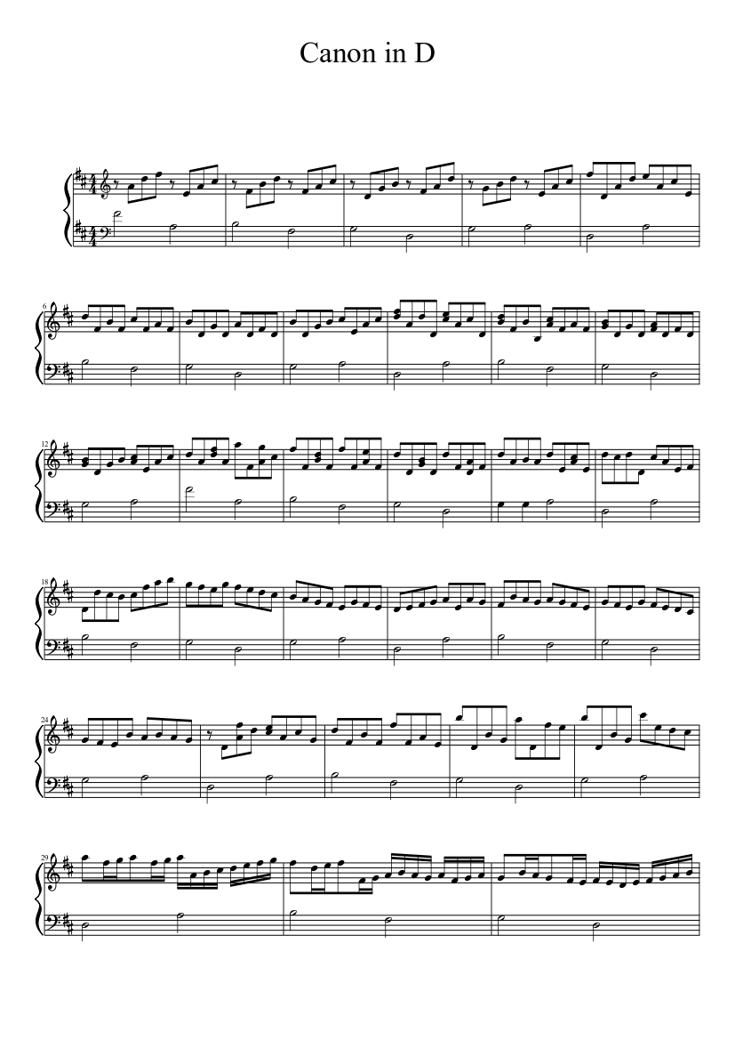 Canon Guitar Sheet Music Notes By Johann Pachelbel Guitar