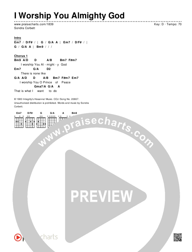 I Worship You Almighty God Chord Chart Editable Sondra