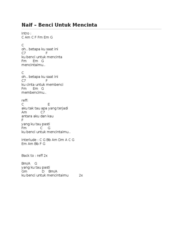 Chord Benci Untuk Mencinta By Naif Chordlicious