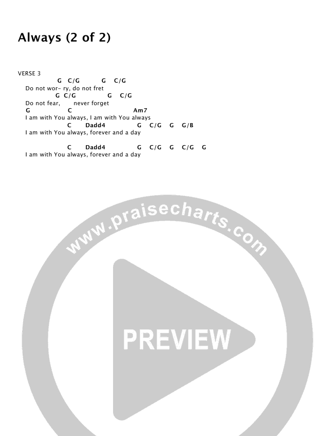 Always Chords Newsong Praisecharts